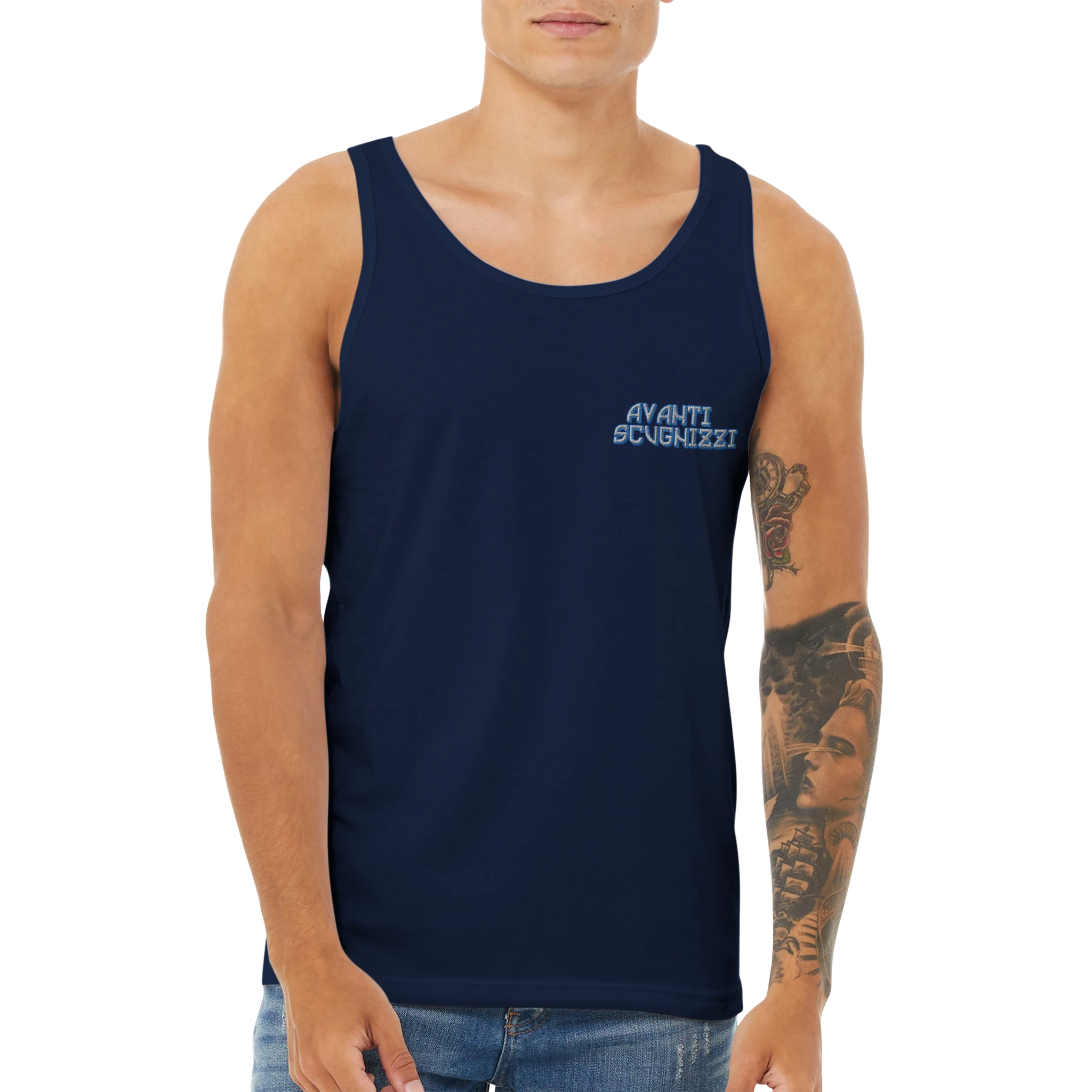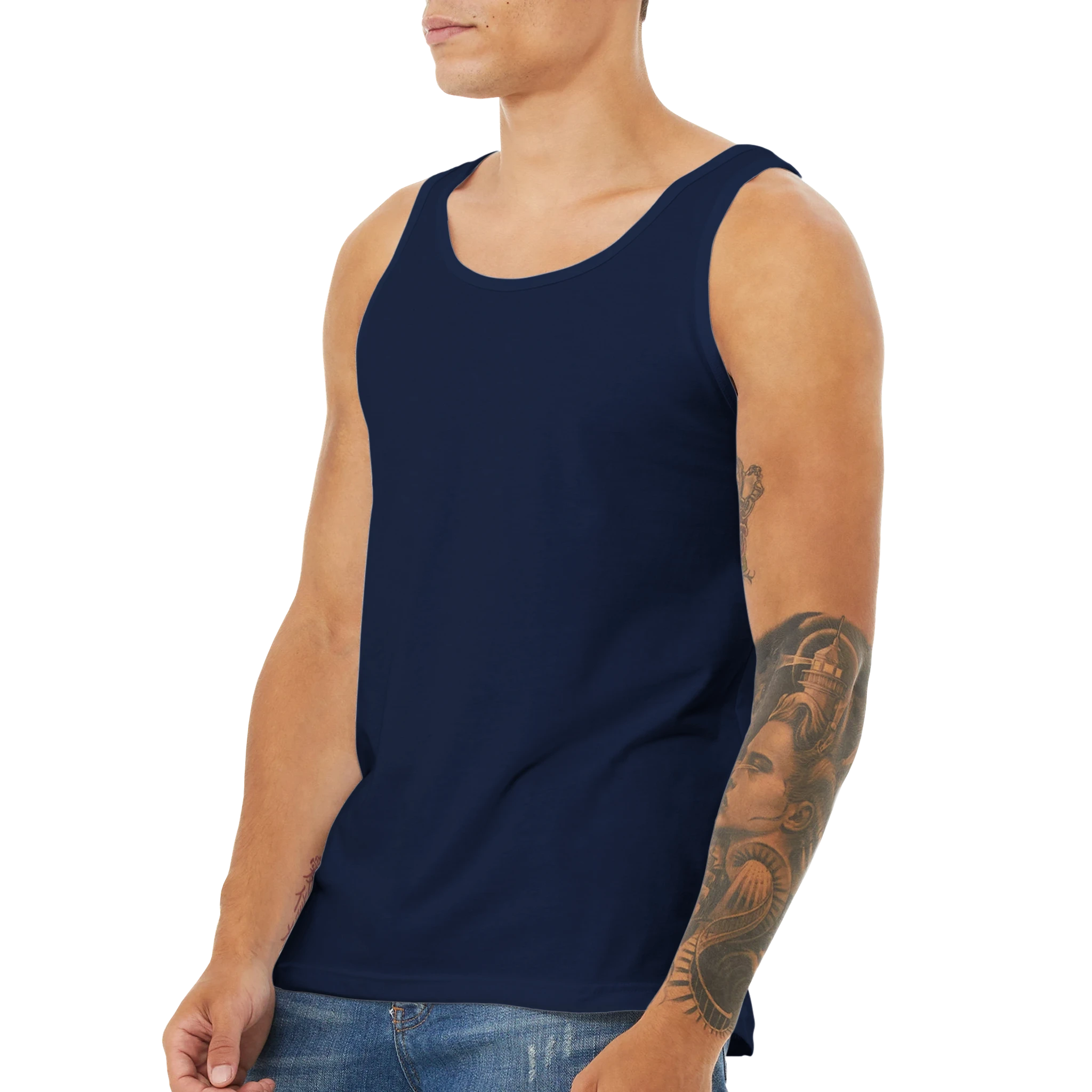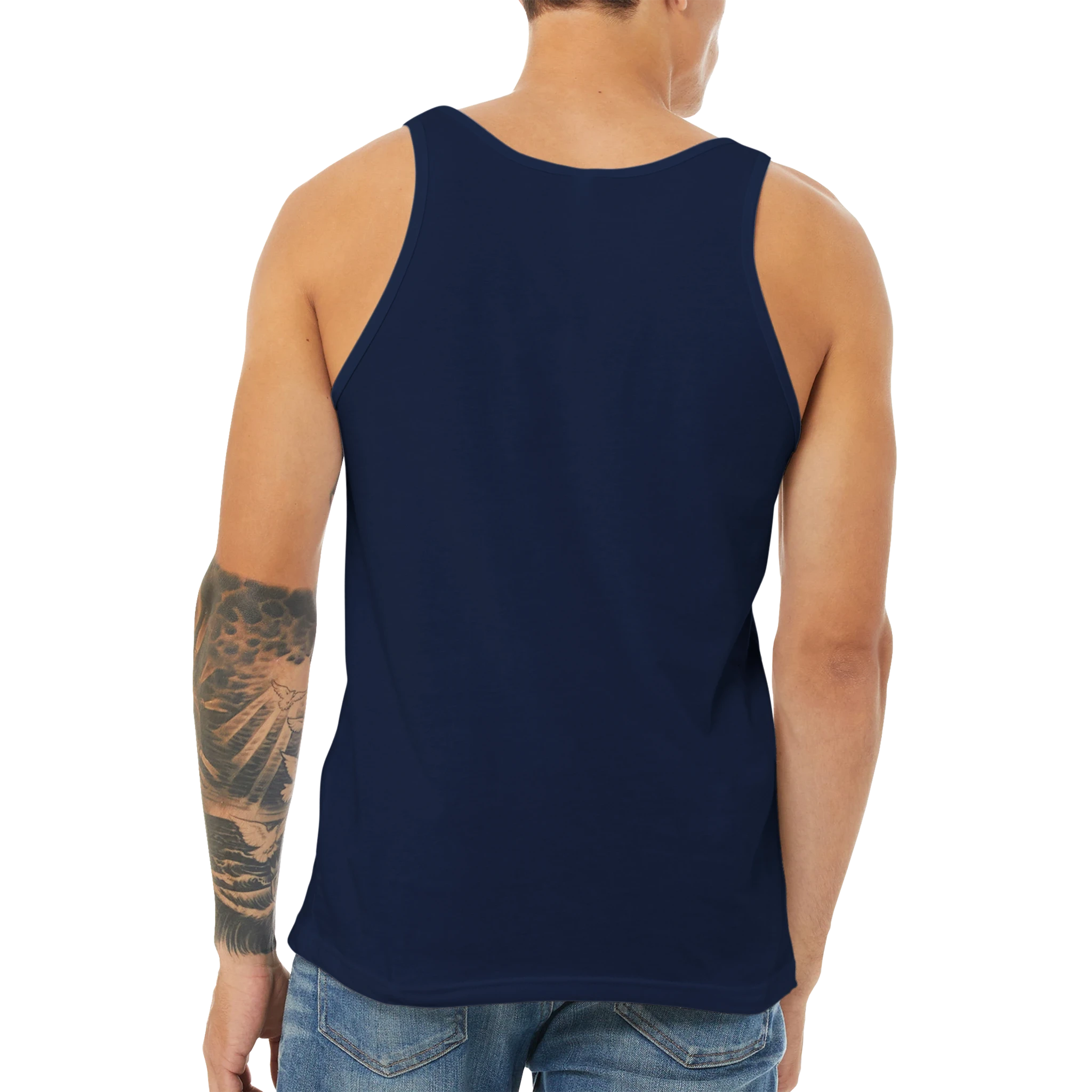 This unisex jersey tank top is an essential piece with a modern cut, featuring a rounded neckline and made from high-quality combed ring-spun cotton, perfect as a blank canvas for printing.