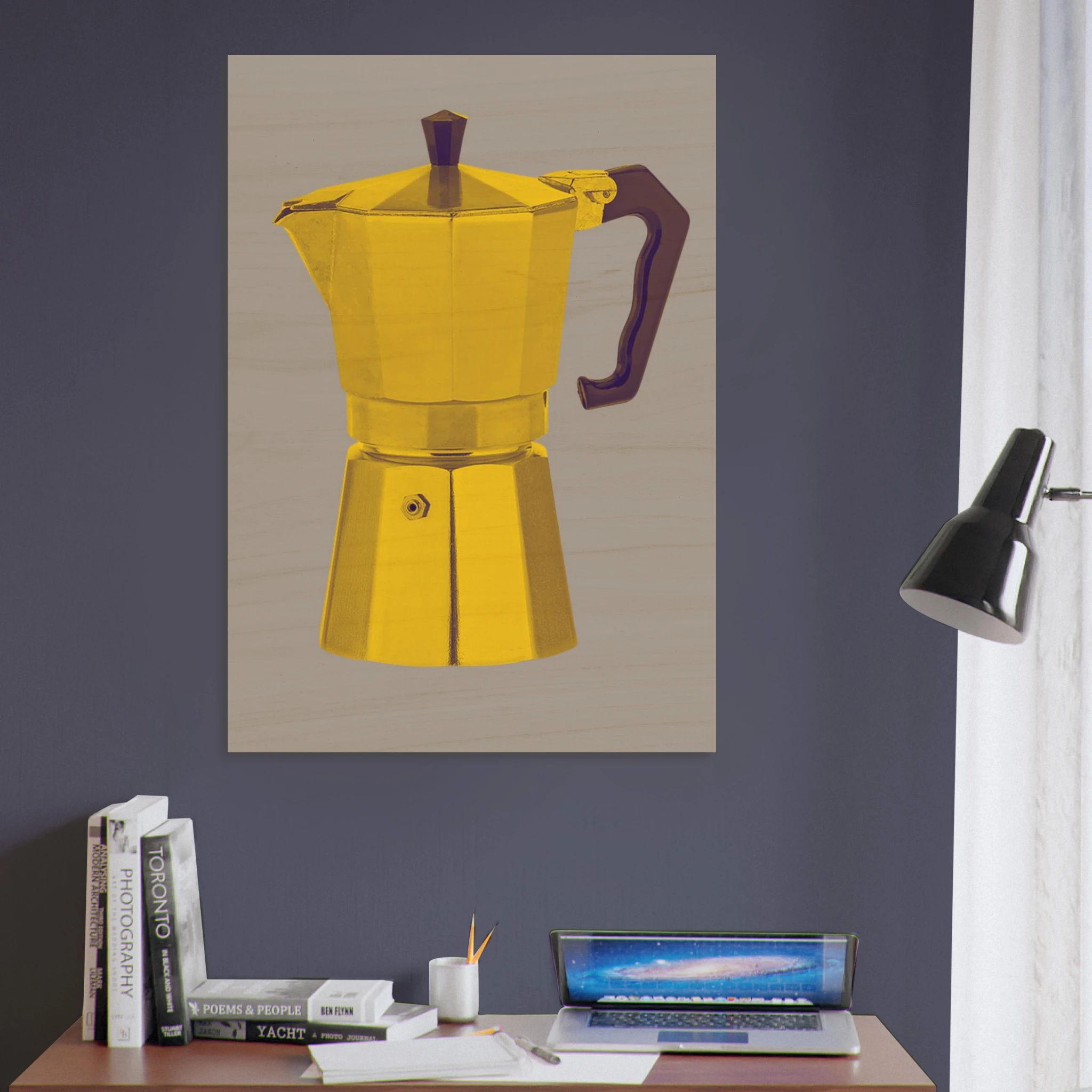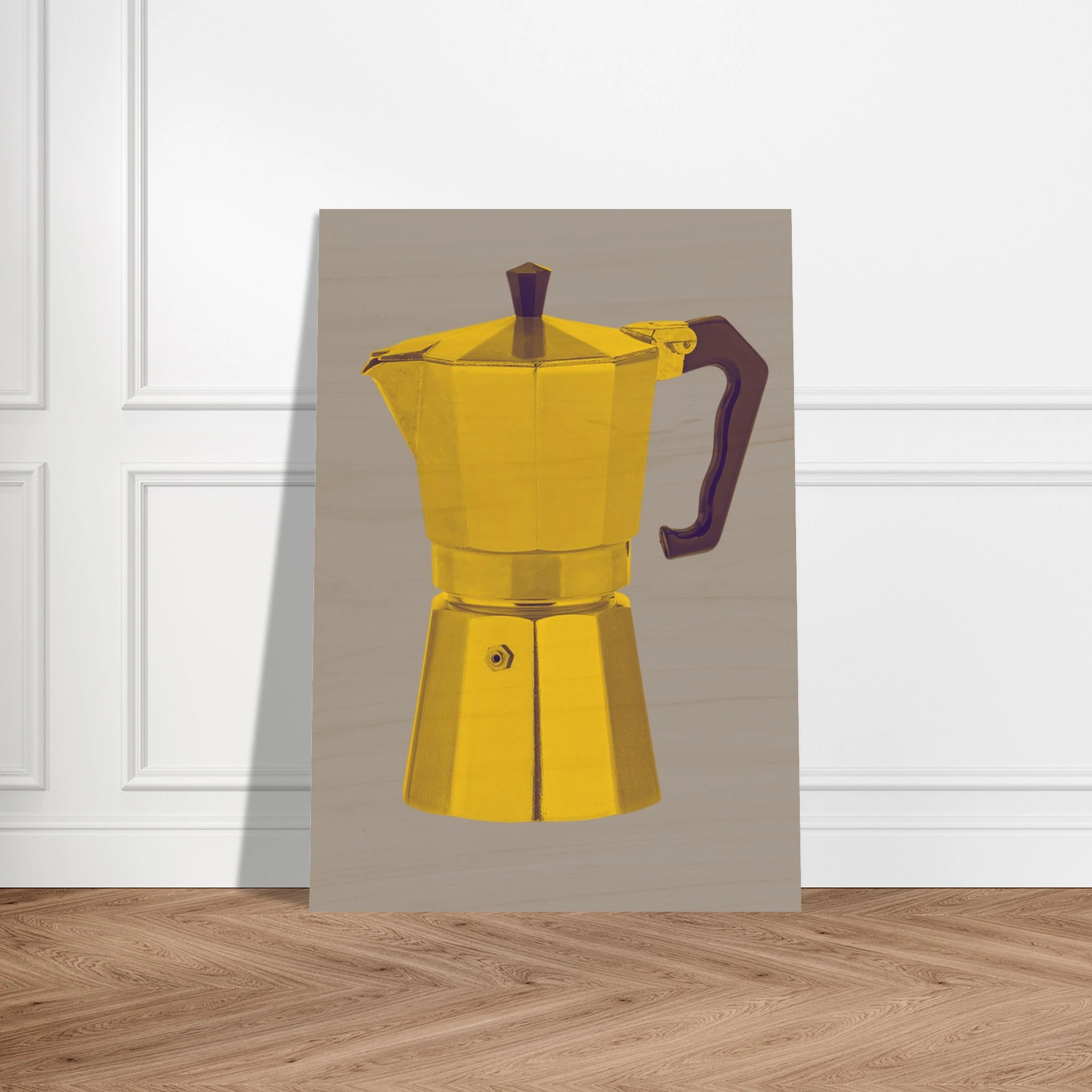 Wood Print – A MACHINETT RO´ CAFE´ – Yellow/Grey (70×100 cm)